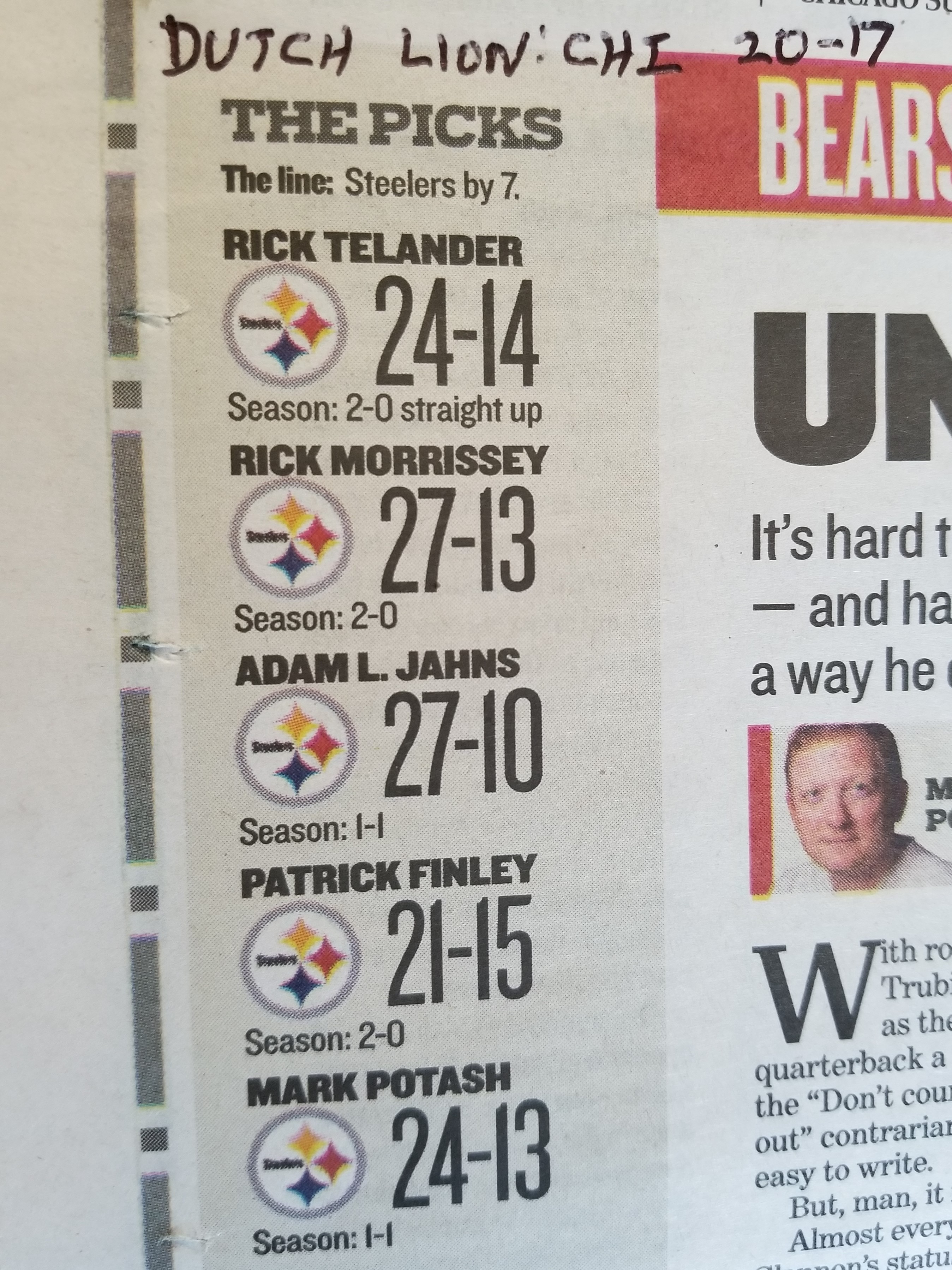 Chicago Sun-Times Bears-Steelers picks